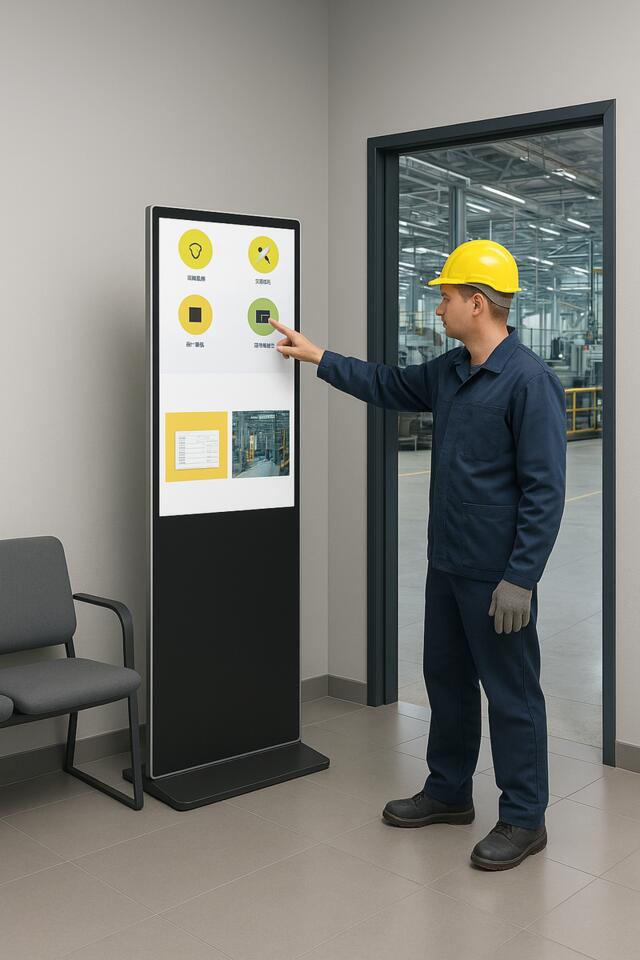 A munkahelyi biztonsági oktatások kezelése hatékonyabbá válhat önkiszolgáló kioszkrendszerrel. Az érintőképernyős kioszk alapú EHS (Egészség, Biztonság, Környezetvédelem) megoldásunk lehetővé teszi a dolgozók, partnerek, alvállalkozók és ügyfelek számára, hogy önállóan elvégezzék az EHS oktatásokat és vizsgákat a munkahelyre érkezéskor a beléptetési folyamat részeként, gyorsan és visszakövethető módon.